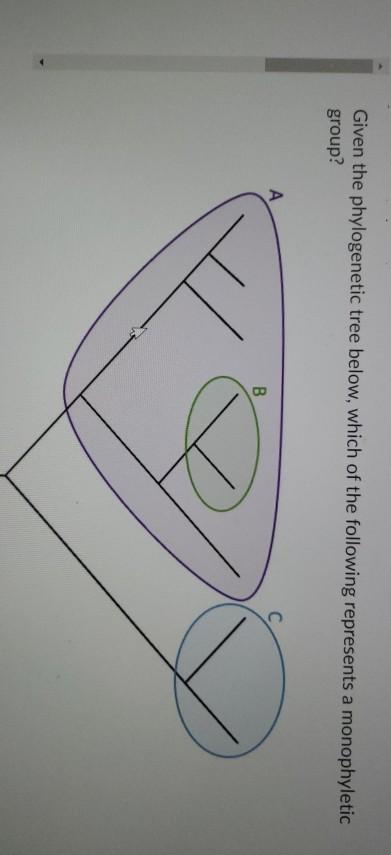 A monophyletic group is defined as a common ancestor and all of its descendants. Log in for more information. This question is based on the following circle graph.